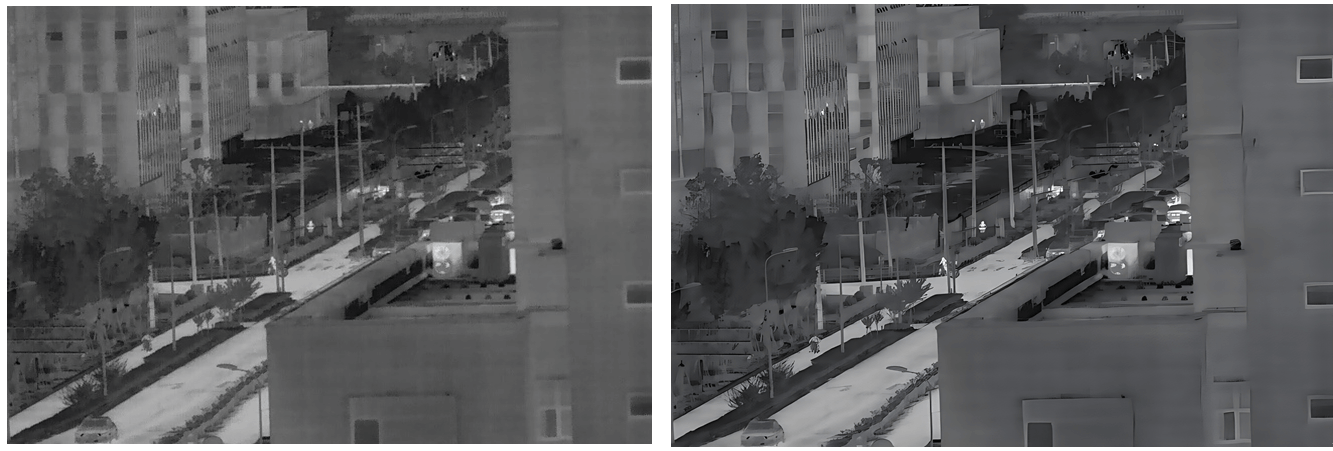 為追求紅外或多光譜融合圖像顯示方面更好的表現(xiàn)力,對紅外視覺的單色圖像,和多光譜偽彩色圖像,經(jīng)算法轉(zhuǎn)換為RGB圖像后,可提升非可見光圖像的視覺體驗(yàn),拓寬紅外視覺類產(chǎn)品的應(yīng)用范圍